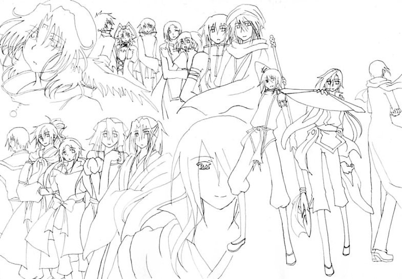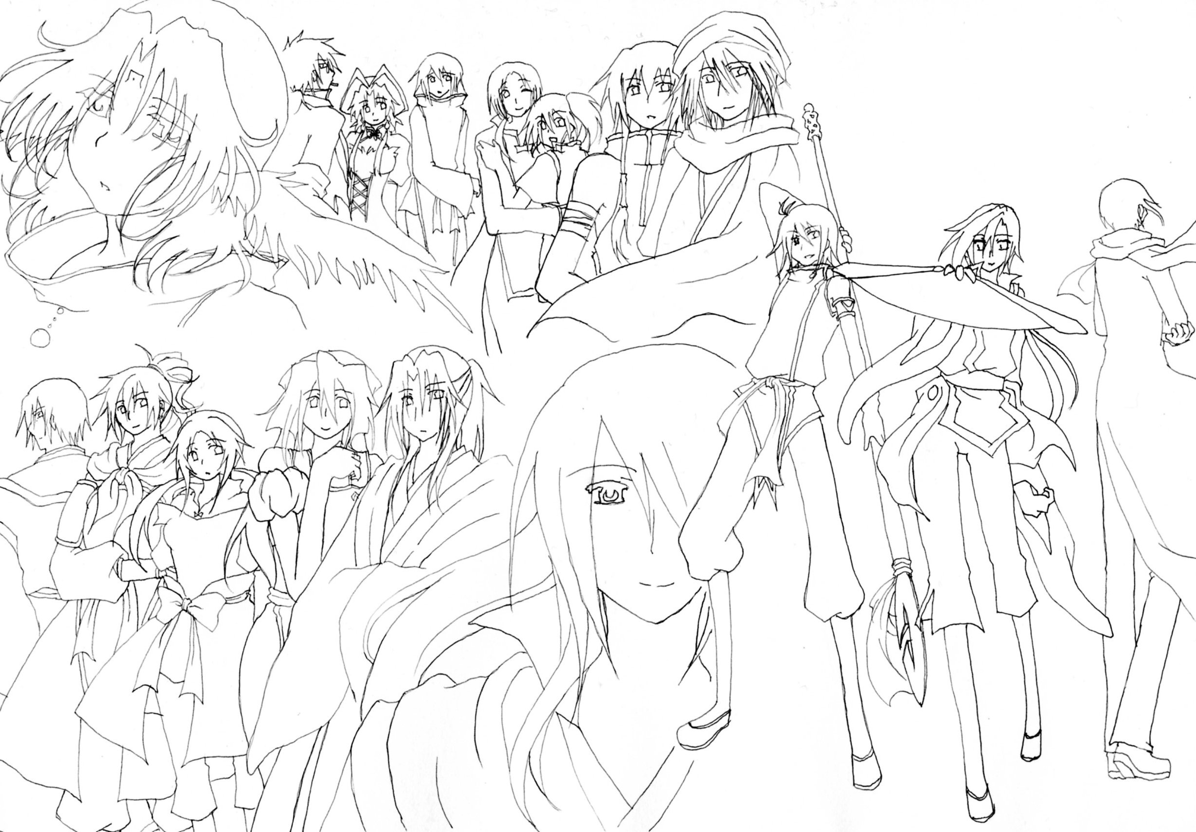 当時やりたかったことを思い出してちょっとなんか…舞い上がったんです…。あのときの絵には前回書いたとおりウノカ・ハルト・睡蓮・サガラ・暁主従がいなかったのですが、代わりにラスボス的ポジションのひとが3人いたんです…。